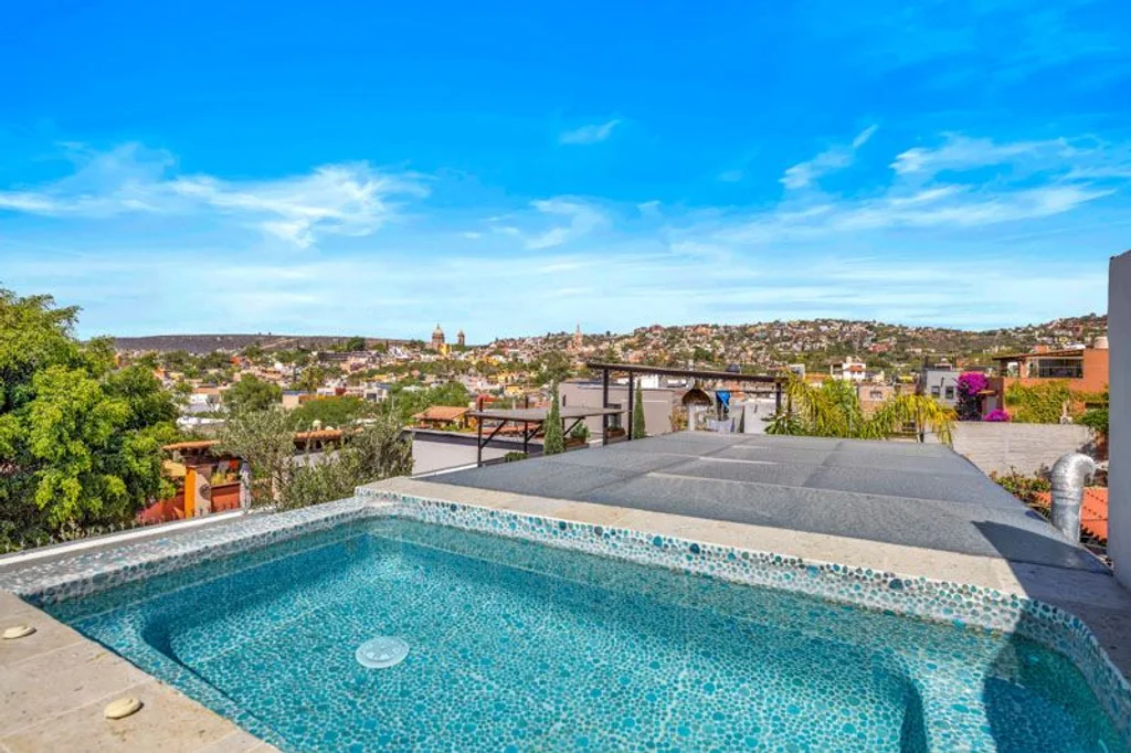 Head up to the third level and you’ll be greeted by an incredible rooftop oasis complete with a jacuzzi, fire pit, and breathtaking 360-degree views of San Miguel de Allende—including an iconic view of La Parroquia de San Miguel Arcángel. Casa Lila has been thoughtfully remodeled with high-quality finishes that combine modern design and natural, earthy touches, resulting in a space that feels both luxurious and grounded.