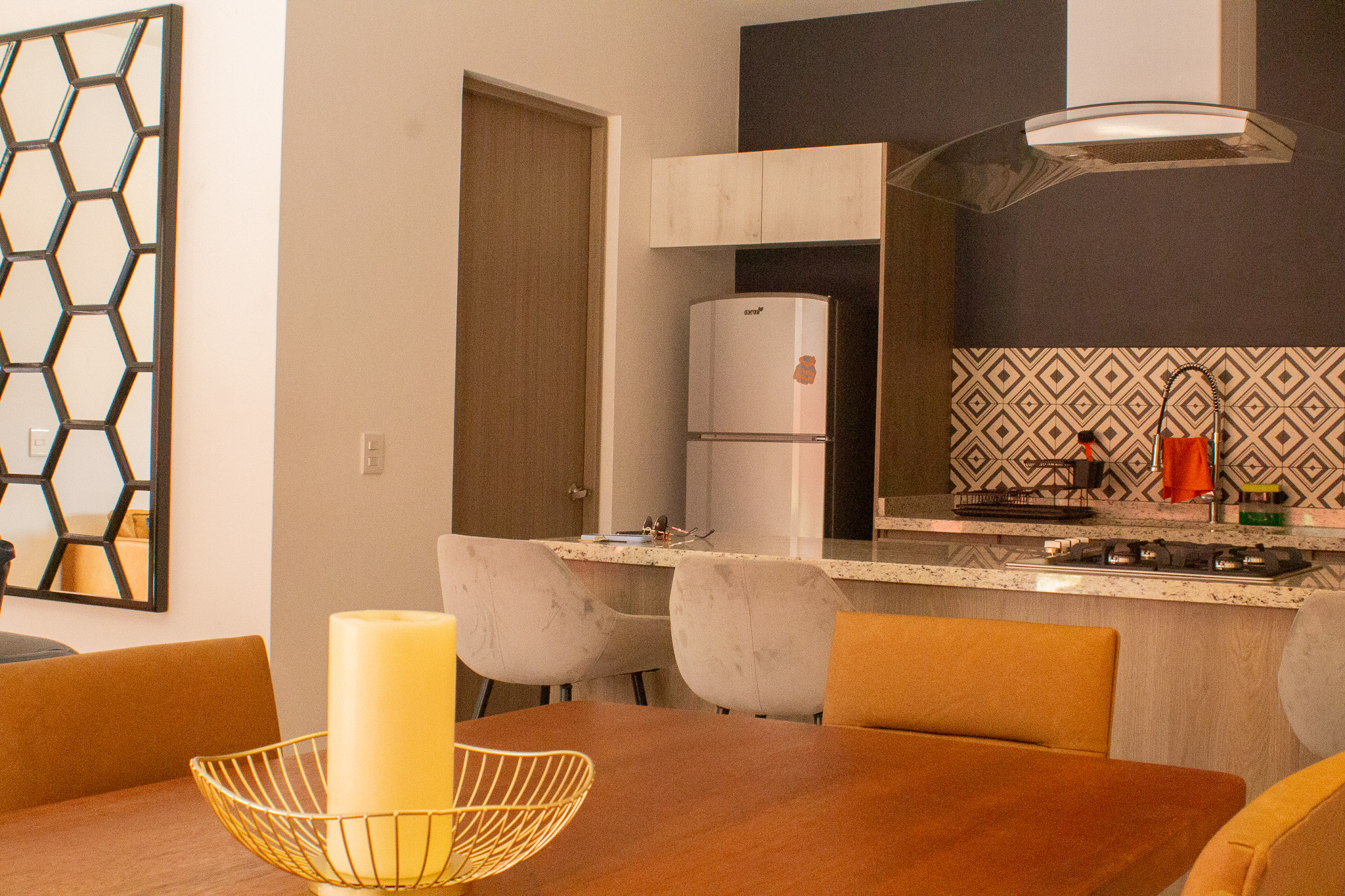 The monthly rent is $22,000 MXN and includes the maintenance fee and internet service.