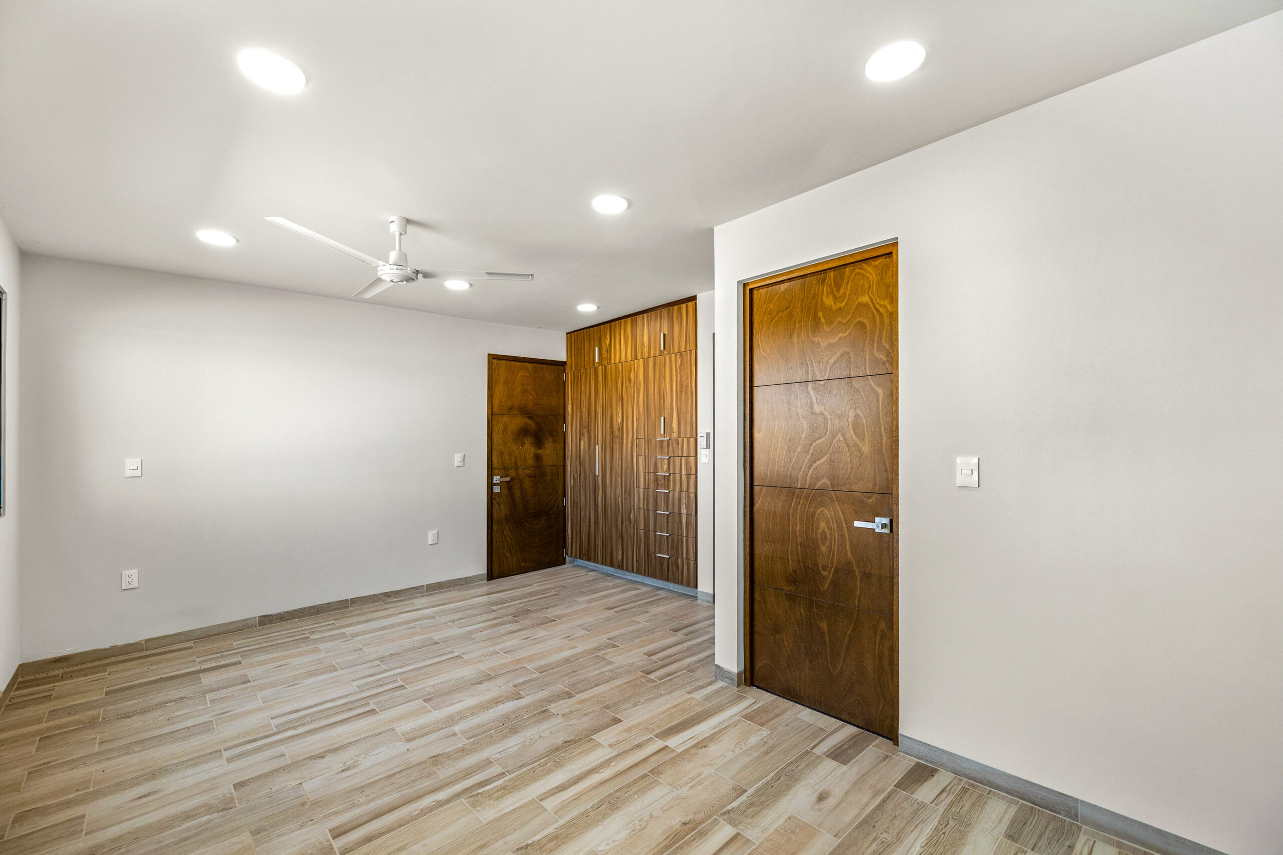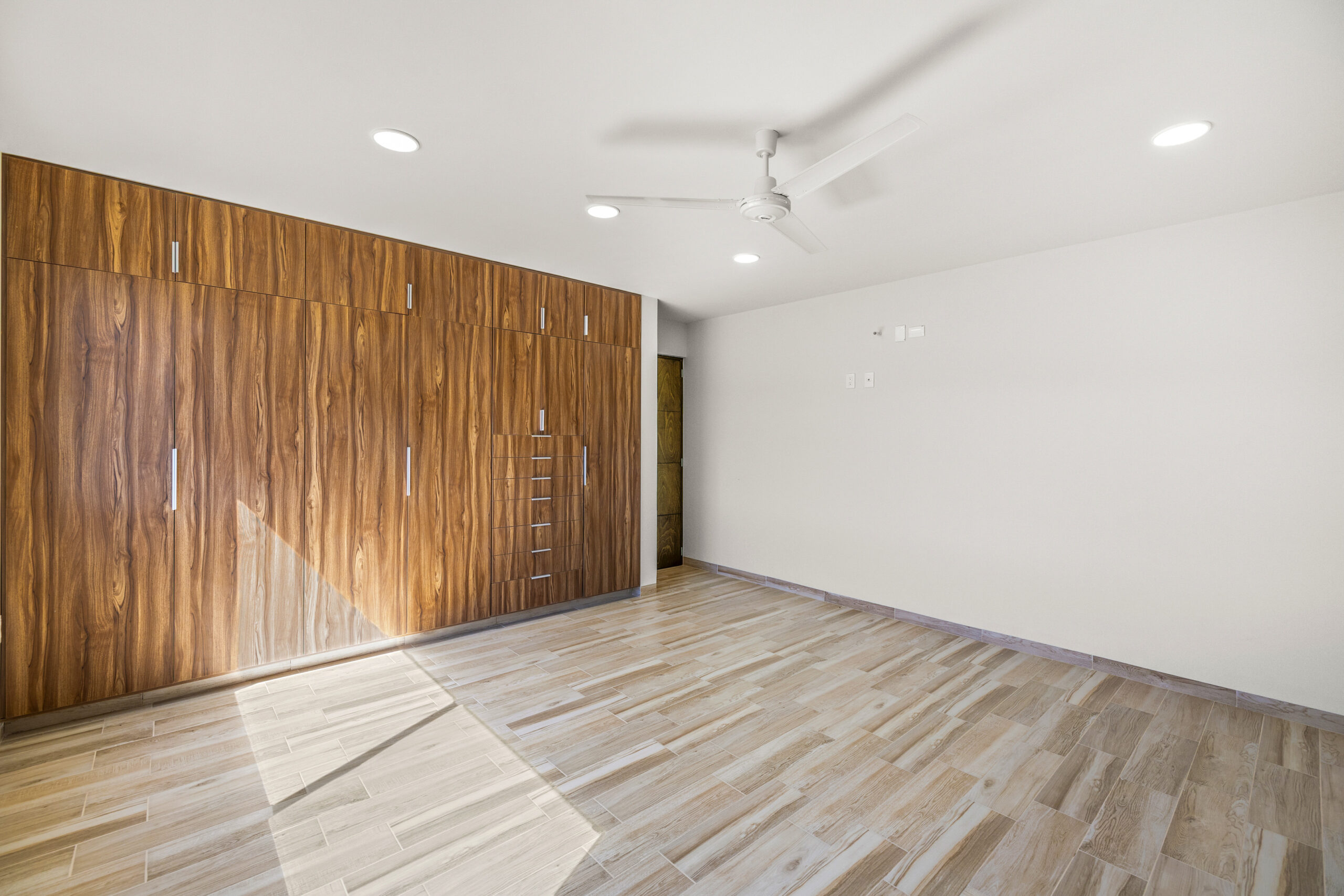 The upper floor is designed with privacy in mind. Here you’ll find a generously sized space that can serve as a family room or study, along with two bedrooms. The primary suite stands out for its spaciousness, walk-in closet, en-suite bathroom, and a balcony with unobstructed views. The secondary bedroom completes this floor with excellent lighting and comfort.