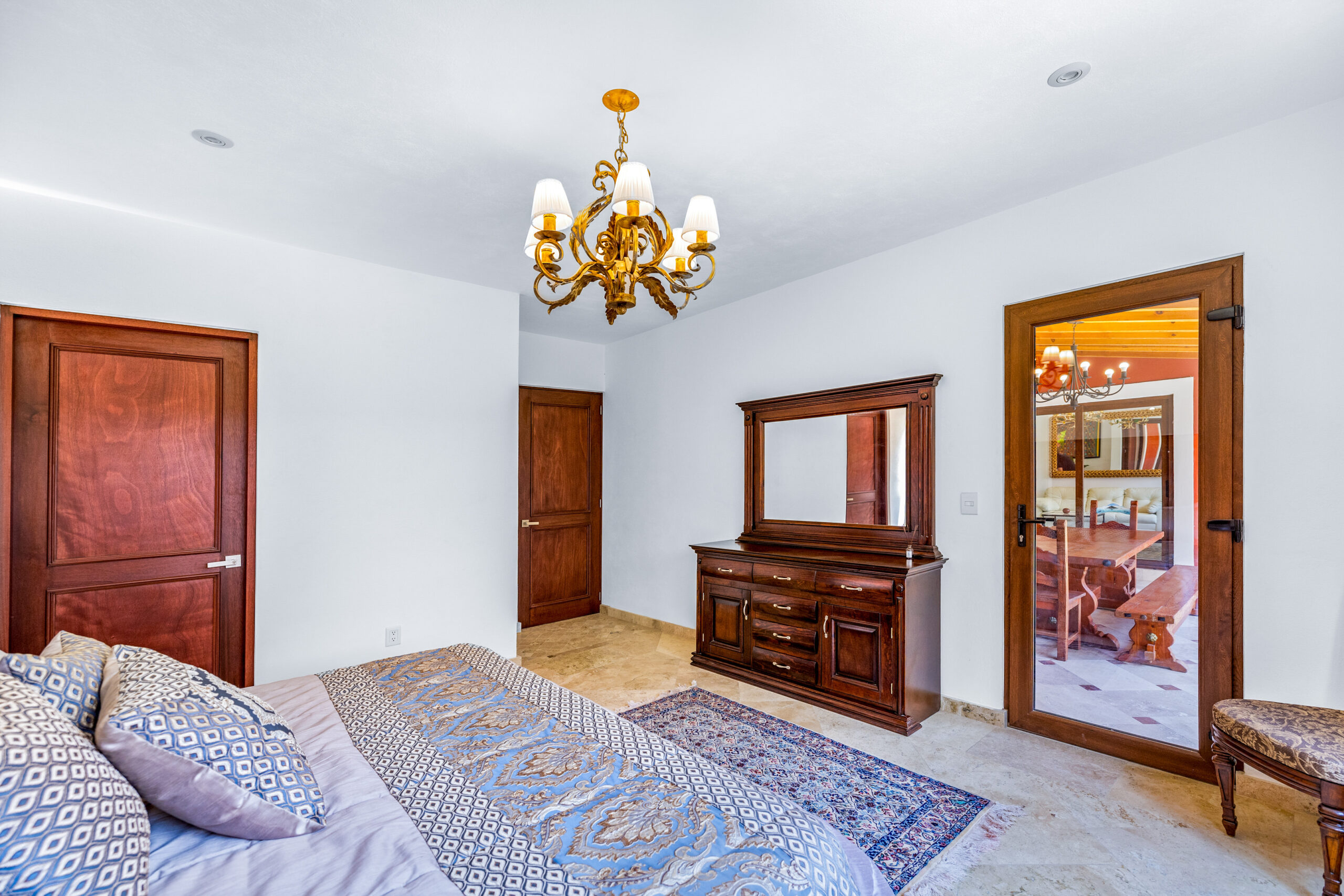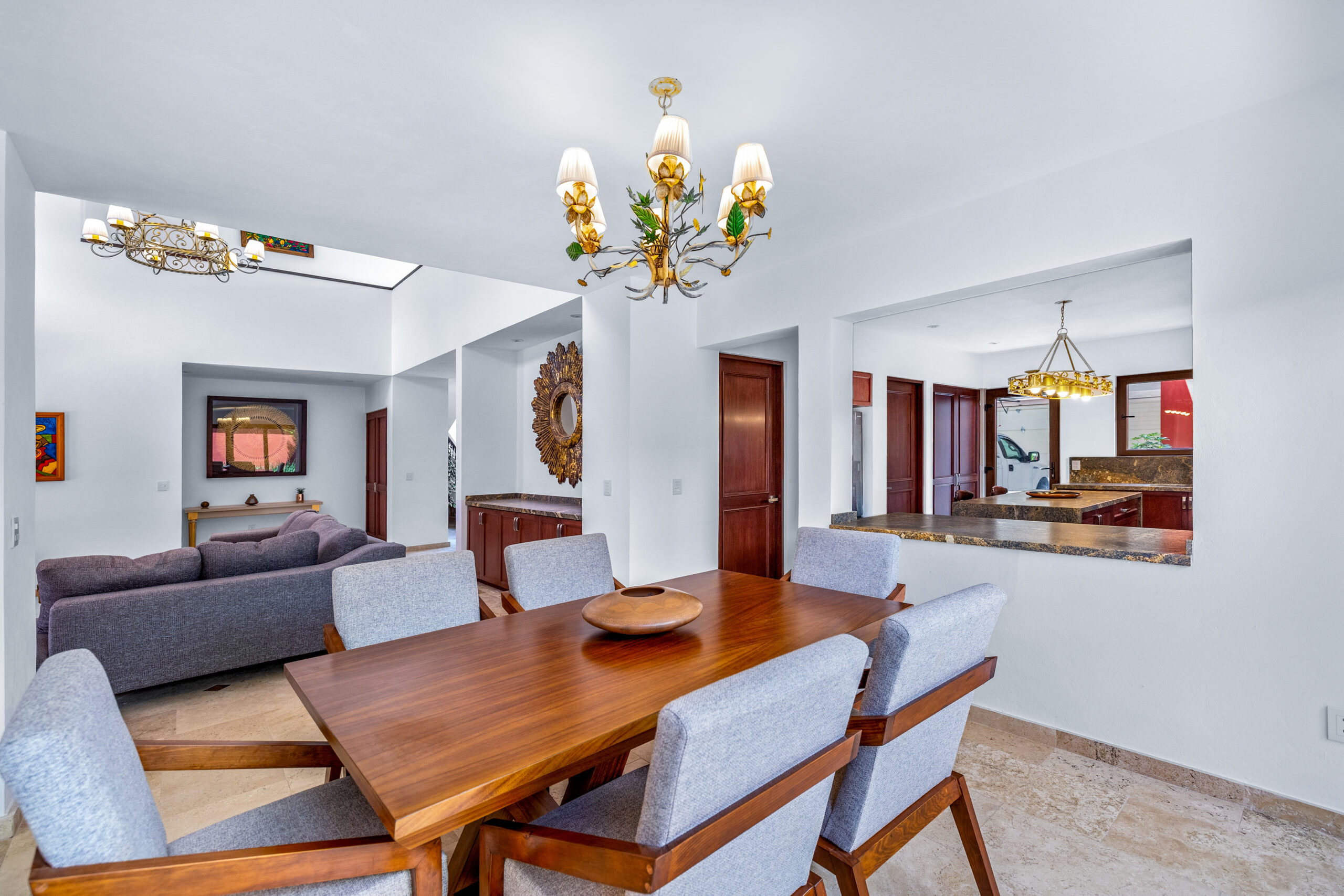 This spacious, light-filled home blends comfort with timeless Mexican charm. Featuring 3 bedrooms and 3.5 bathrooms, the property boasts travertine marble floors, selected double pane glass doors and windows*, lush gardens, and inviting terraces. It is the perfect combination for relaxed living and entertaining.