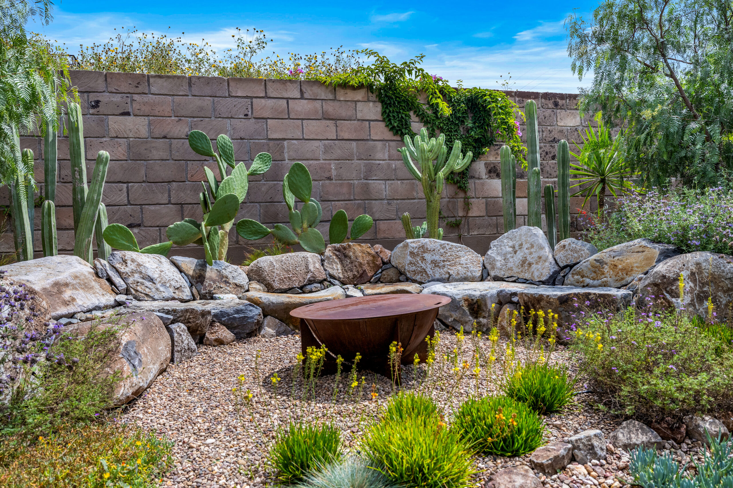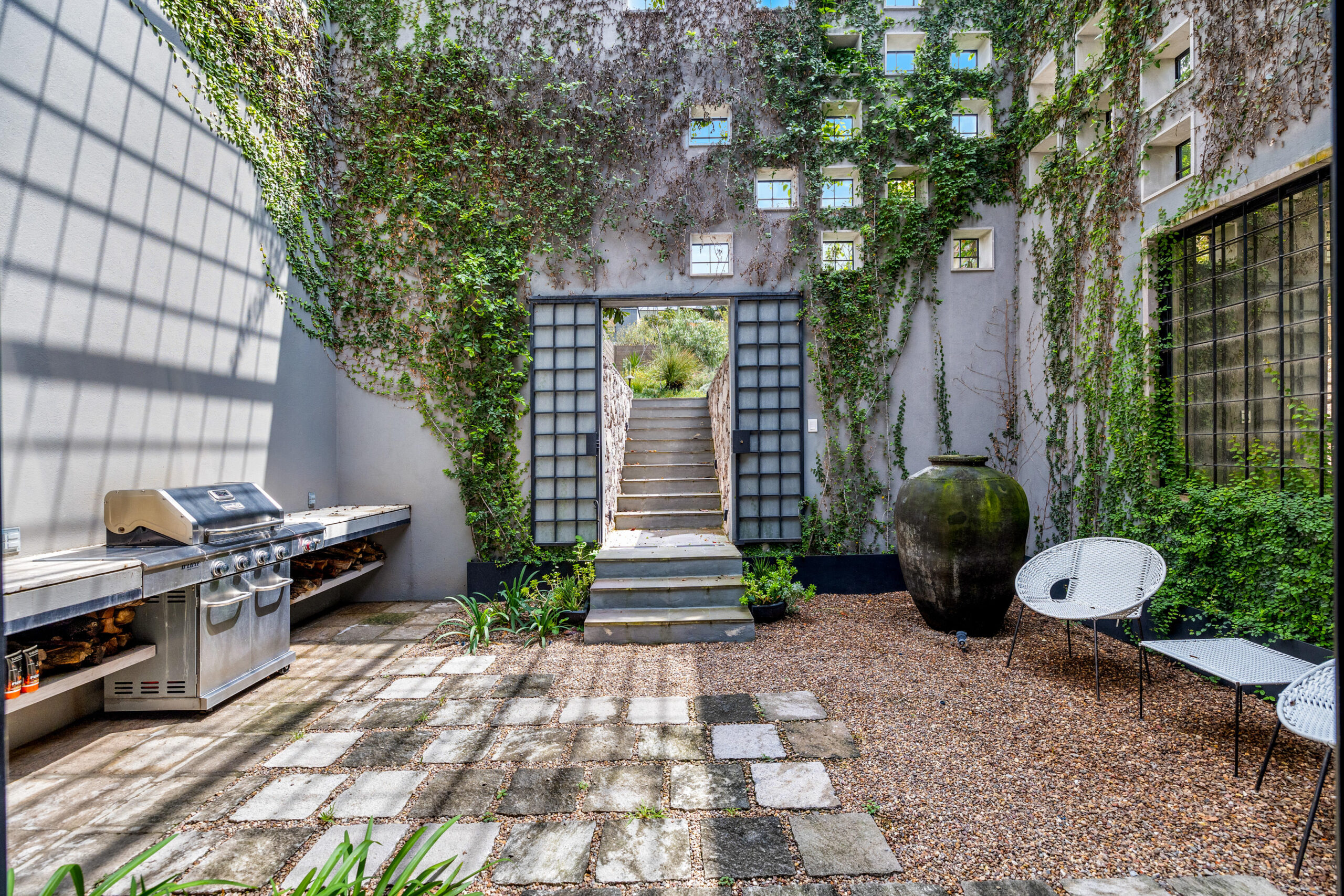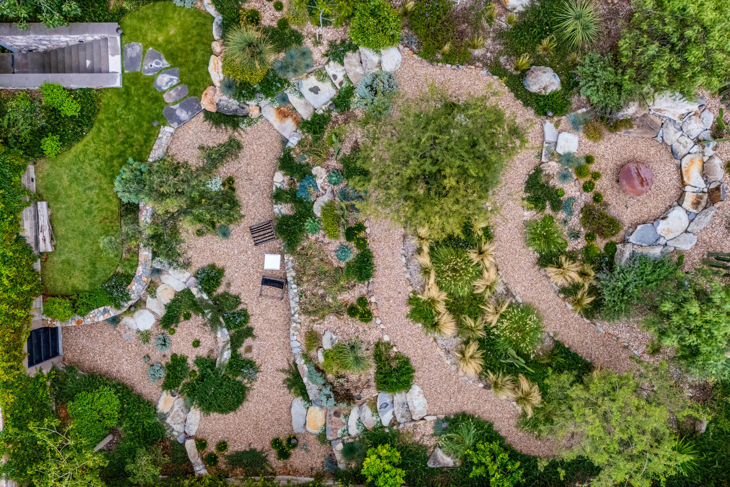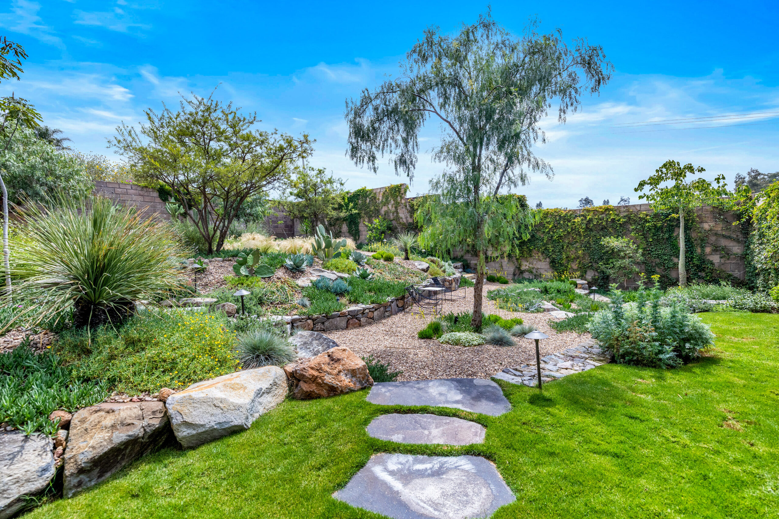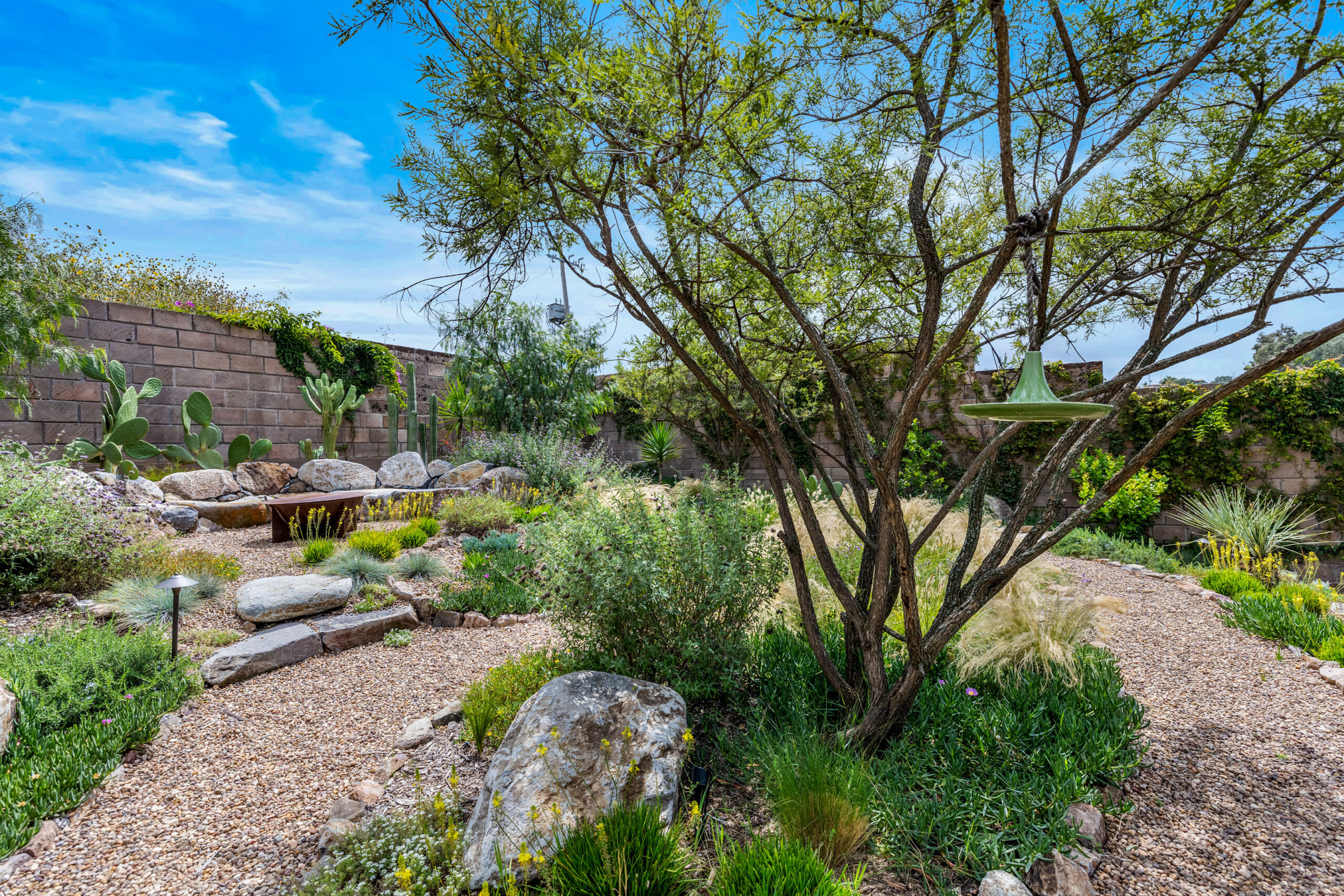 The 500 m² private, walled garden- inspired by the neighboring Charco del Ingenio and designed by the talented team at Floresta-is a lush, native retreat filled with color and texture. A small side yard adds charm and versatility, and with only one adjoining neighbor, the property offers rare privacy and tranquility.