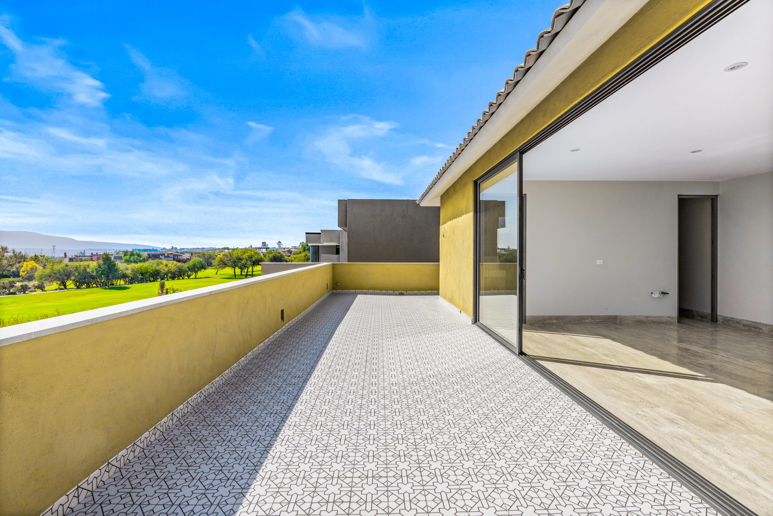 The rooftop offers a versatile multipurpose room with a full bathroom, storage area, and utility room. Two expansive terraces — one overlooking the golf course and another with panoramic views of the development — make this space perfect for relaxation, gatherings, or simply admiring the landscape.