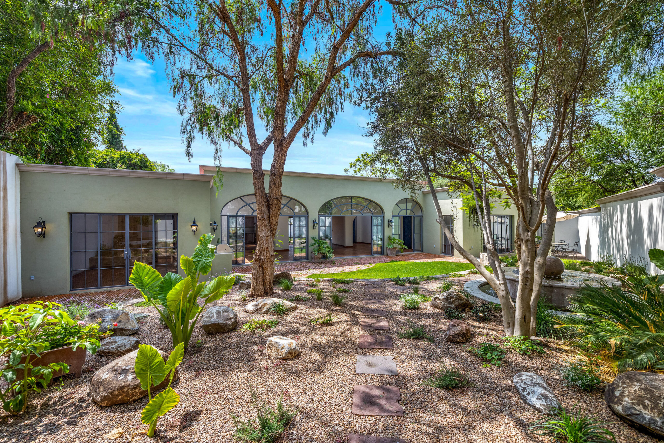 This stylish property features 3 bedrooms, 3 full bathrooms, and 2 half baths, including a private casita ideal for guests or as a home office. The open-concept floor plan flows effortlessly from the gourmet kitchen—outfitted with Viking appliances—to the spacious indoor living areas and out to the expansive backyard.