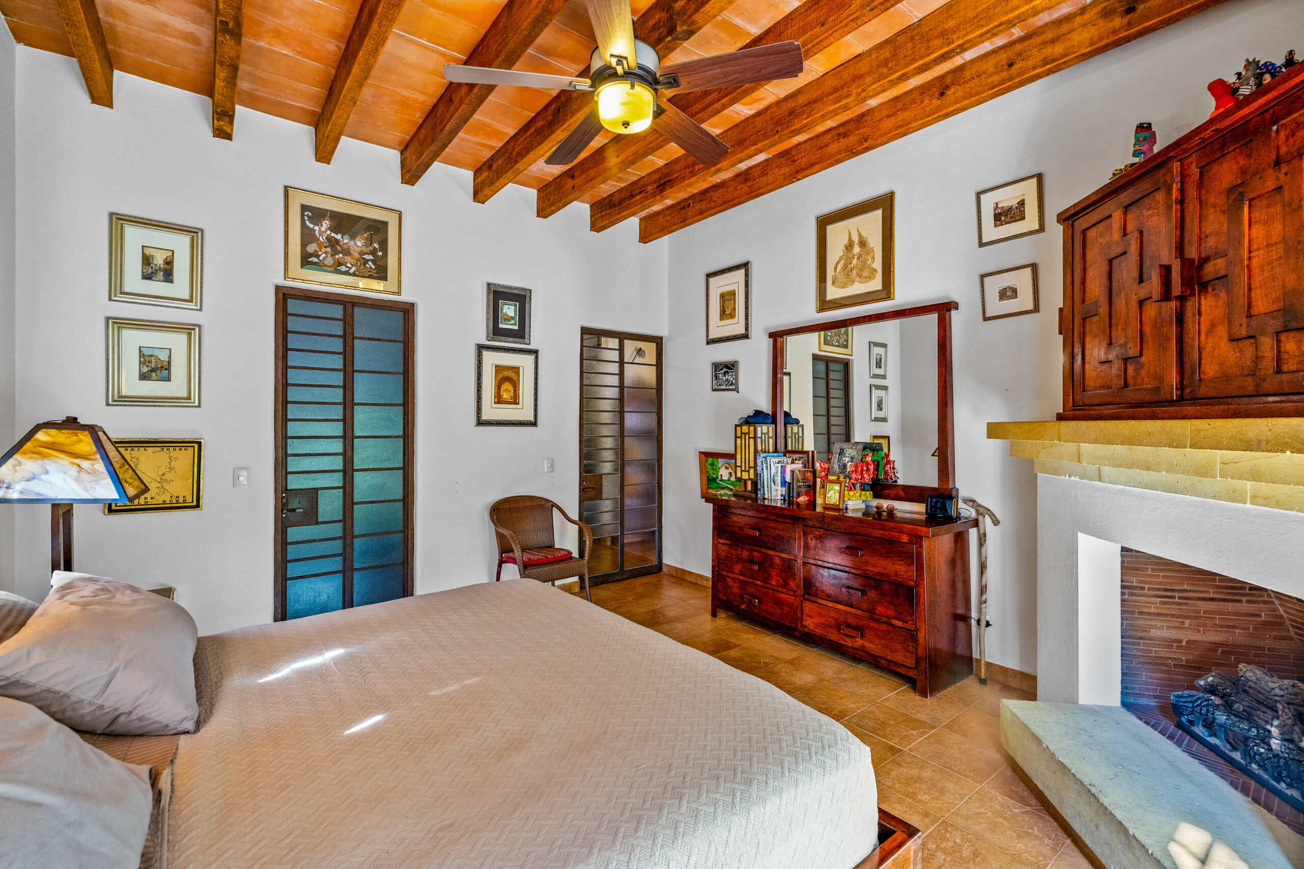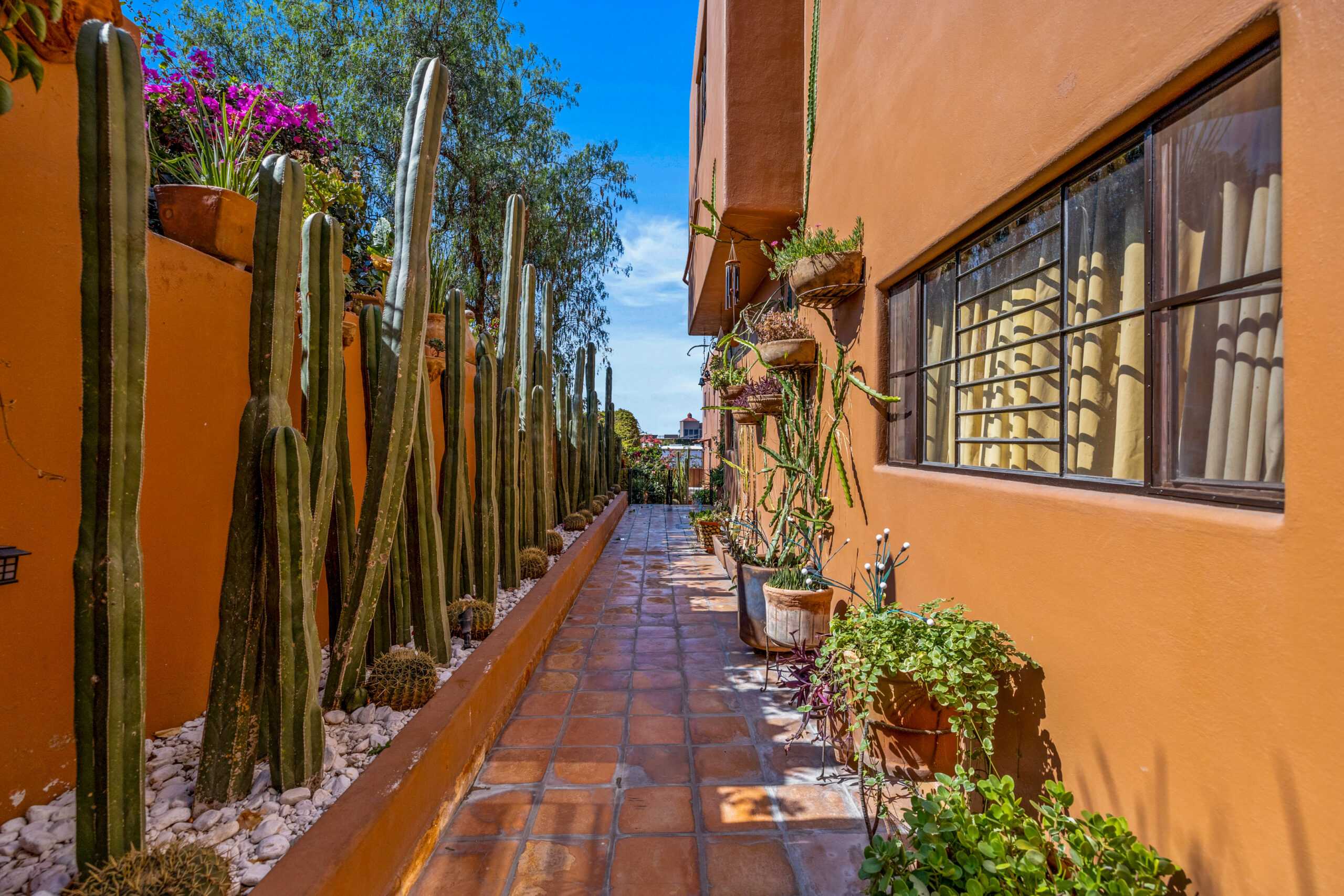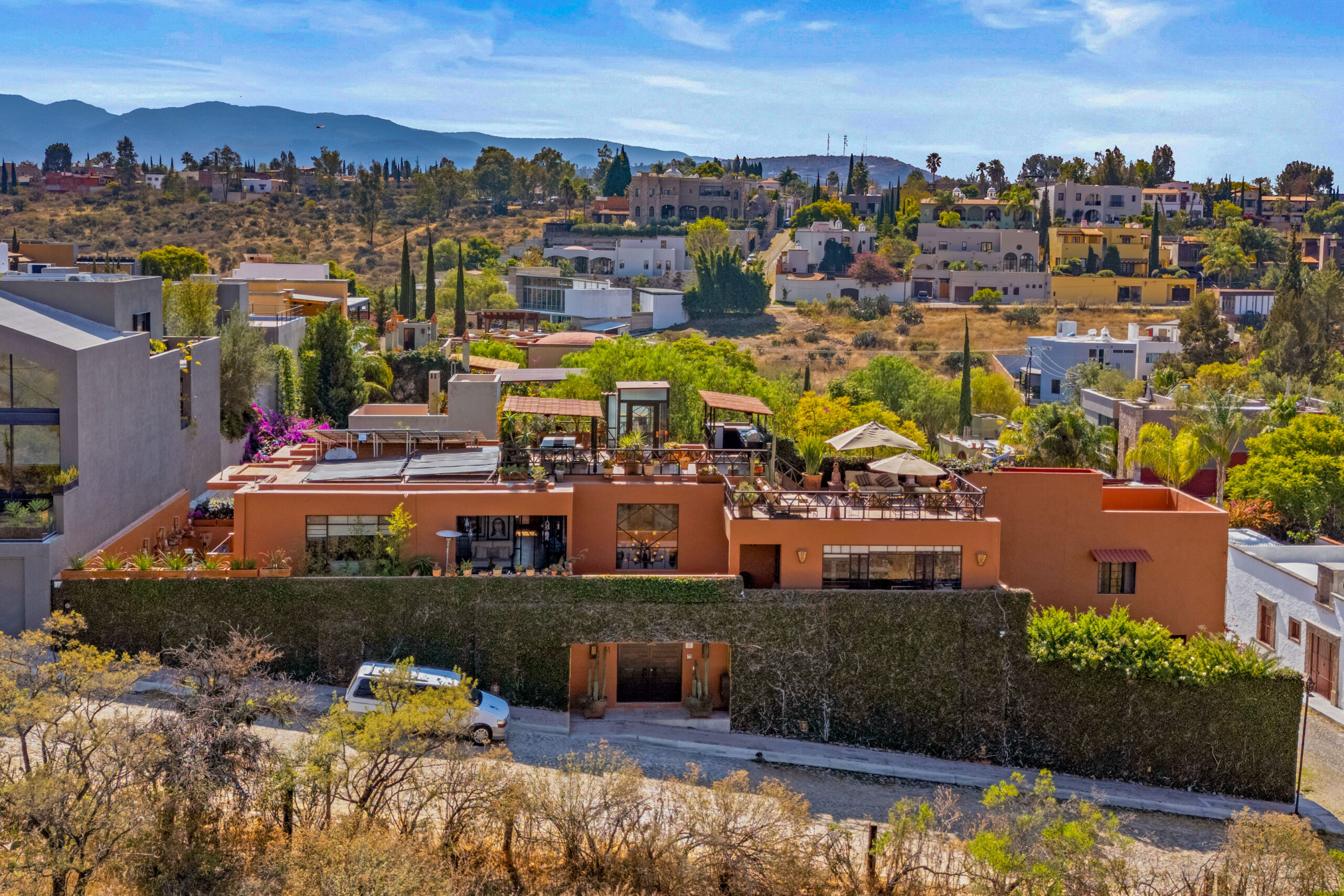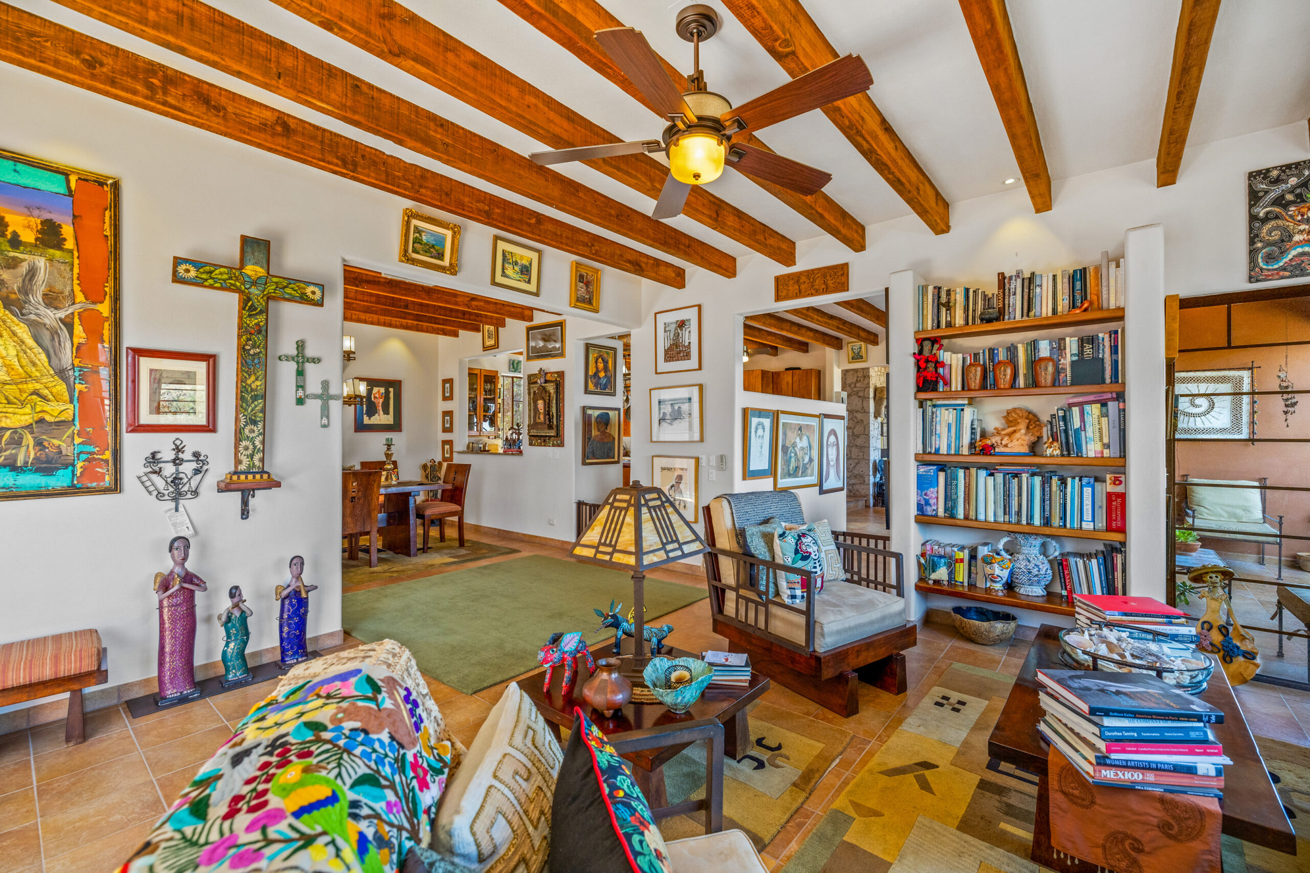 Discover a striking Mexican-modern residence where clean lines, artisanal craftsmanship, and warm design elements come together beautifully. Originally designed and built by the architect as his personal home, it stands as a true homage to his vision and to the artistic spirit of his wife. Positioned directly across from El Charco del Ingenio, this exceptional property offers privacy, nature, and architectural intention in perfect harmony. A dramatic set of double-story metal doors, framed by two artisanal fountains, creates a memorable entrance and sets the tone for the thoughtful design found throughout.