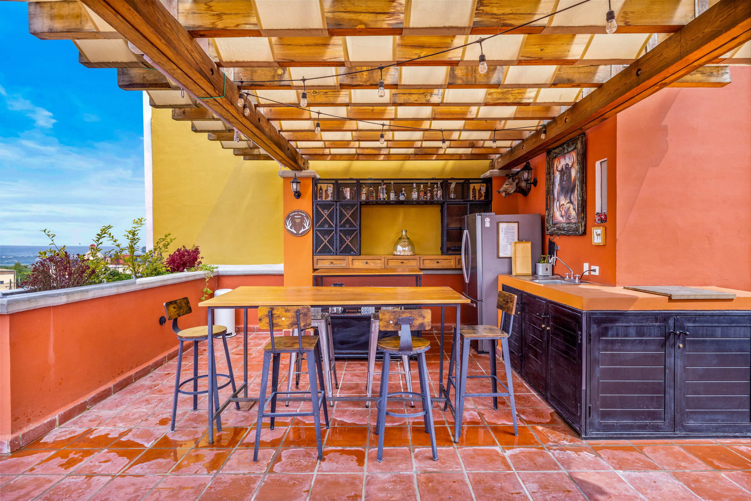 The real gem of this condo is the spacious covered rooftop terrace with its own built-in bar, offering breathtaking water views and a perfect setting for morning coffee or evening gatherings with friends and family. Imagine watching sunsets and starlit nights from your very own patio.