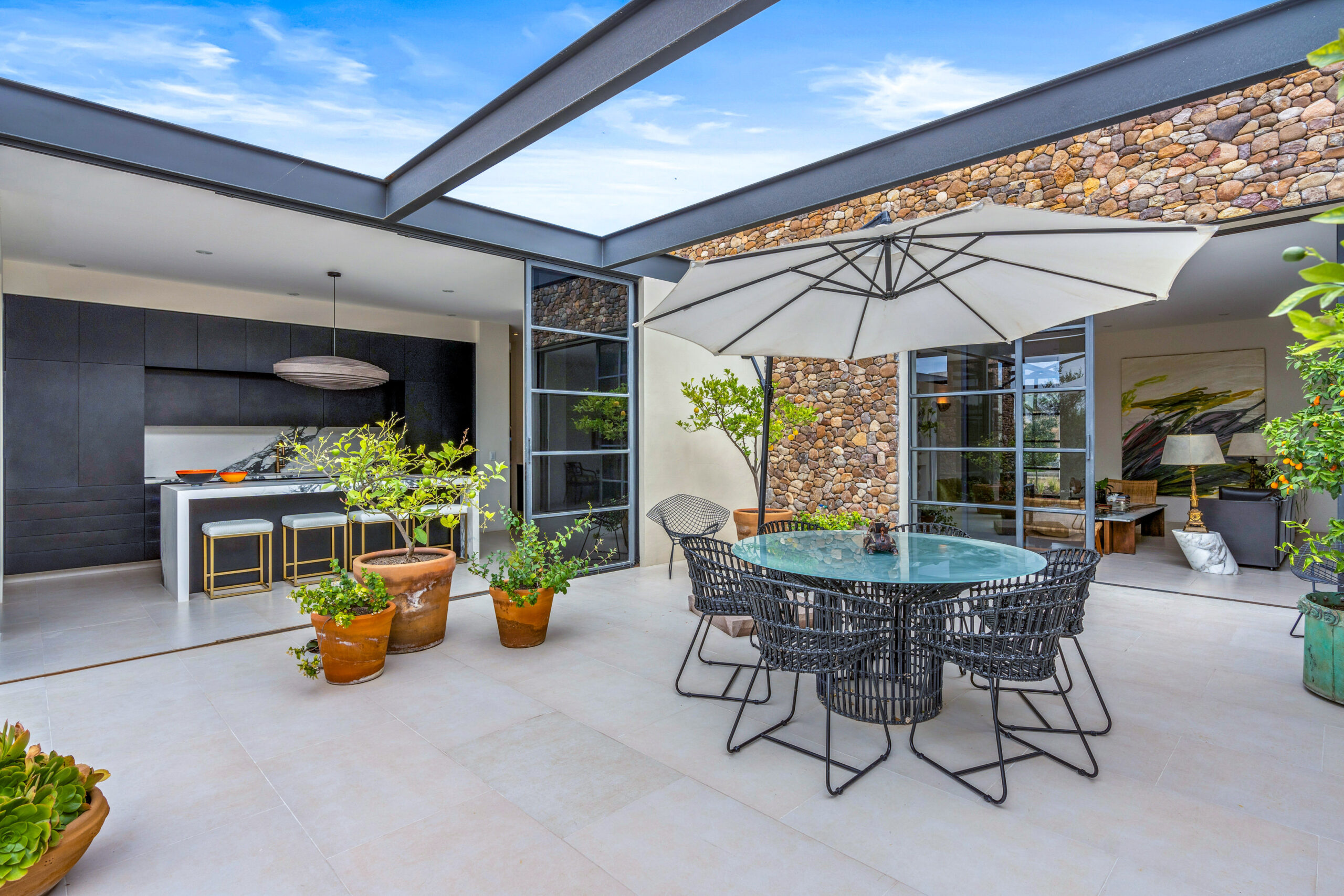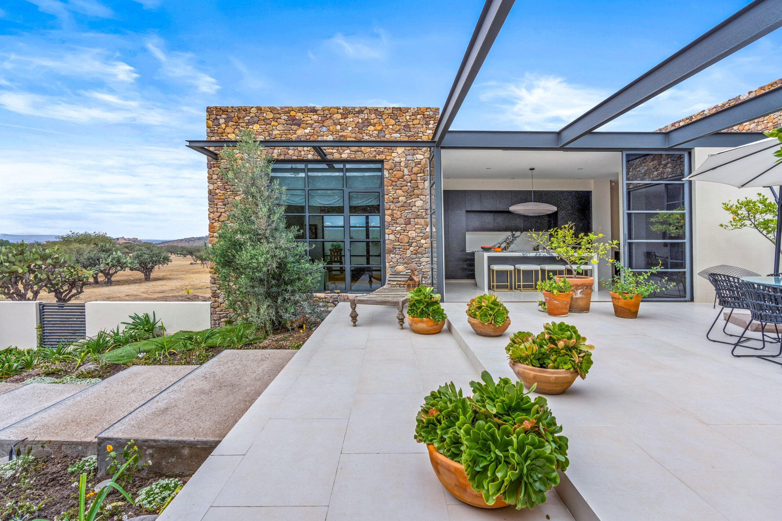 Seamless Indoor-Outdoor Living: Expansive openings create a smooth transition between interior spaces and the surrounding landscape, enhancing the sense of openness.
