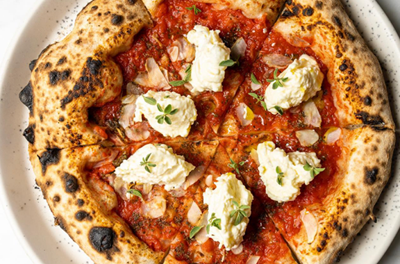 Specializing in sourdough pizzas and vegetable-focused dishes, it highlights fresh, locally sourced ingredients. Pizzas feature a sourdough base fermented for over 24 hours, made with a blend of organic Mexican and Italian flours, pure water, and Puebla salt for exceptional flavor and texture.