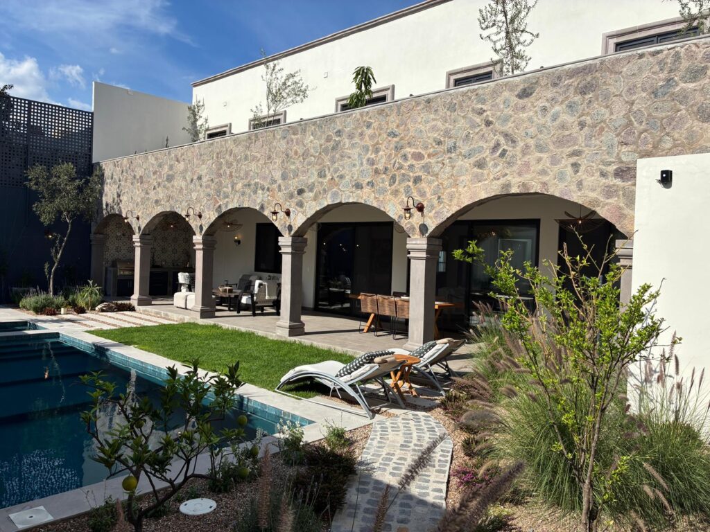 Fully renovated in 2025, this 5-bedroom, 6-bath home in the center of San Miguel exudes warmth, comfort and convenience. A large open-plan great room and kitchen front the beautiful, arched covered porch, with a pool, jacuzzi, and fruit trees beyond. With loads of space to spread out, play games, talk over wine and dine together, this is the perfect home for multigenerational families, groups or couples, or friends reuniting after time apart.